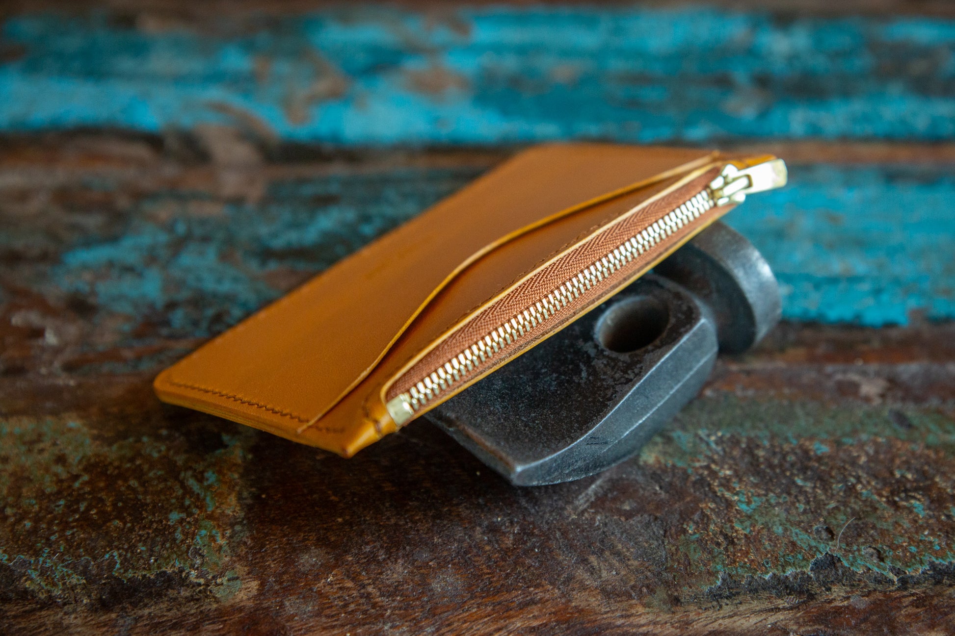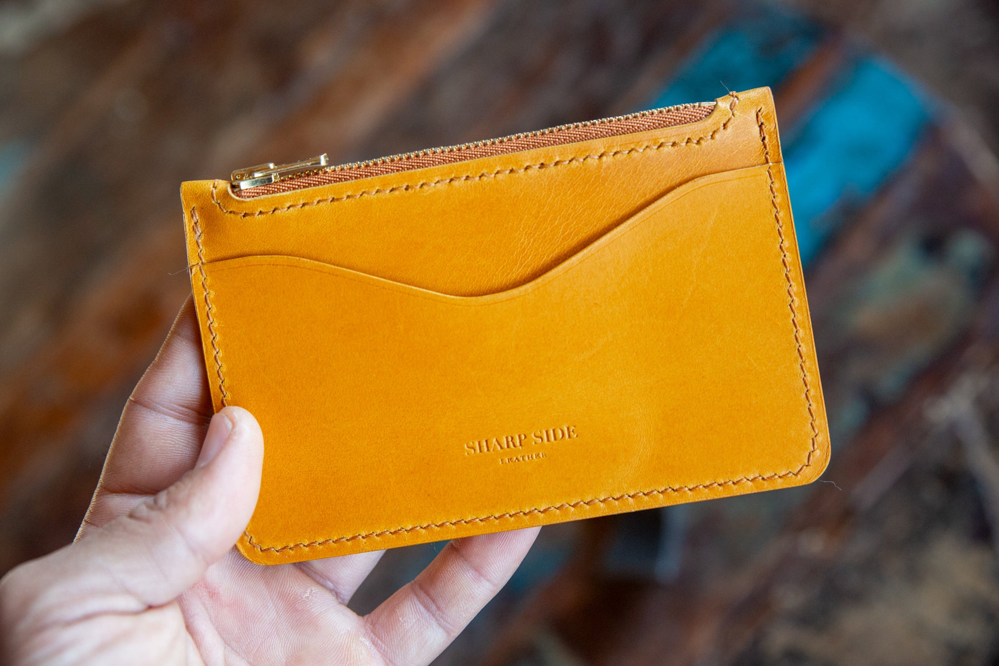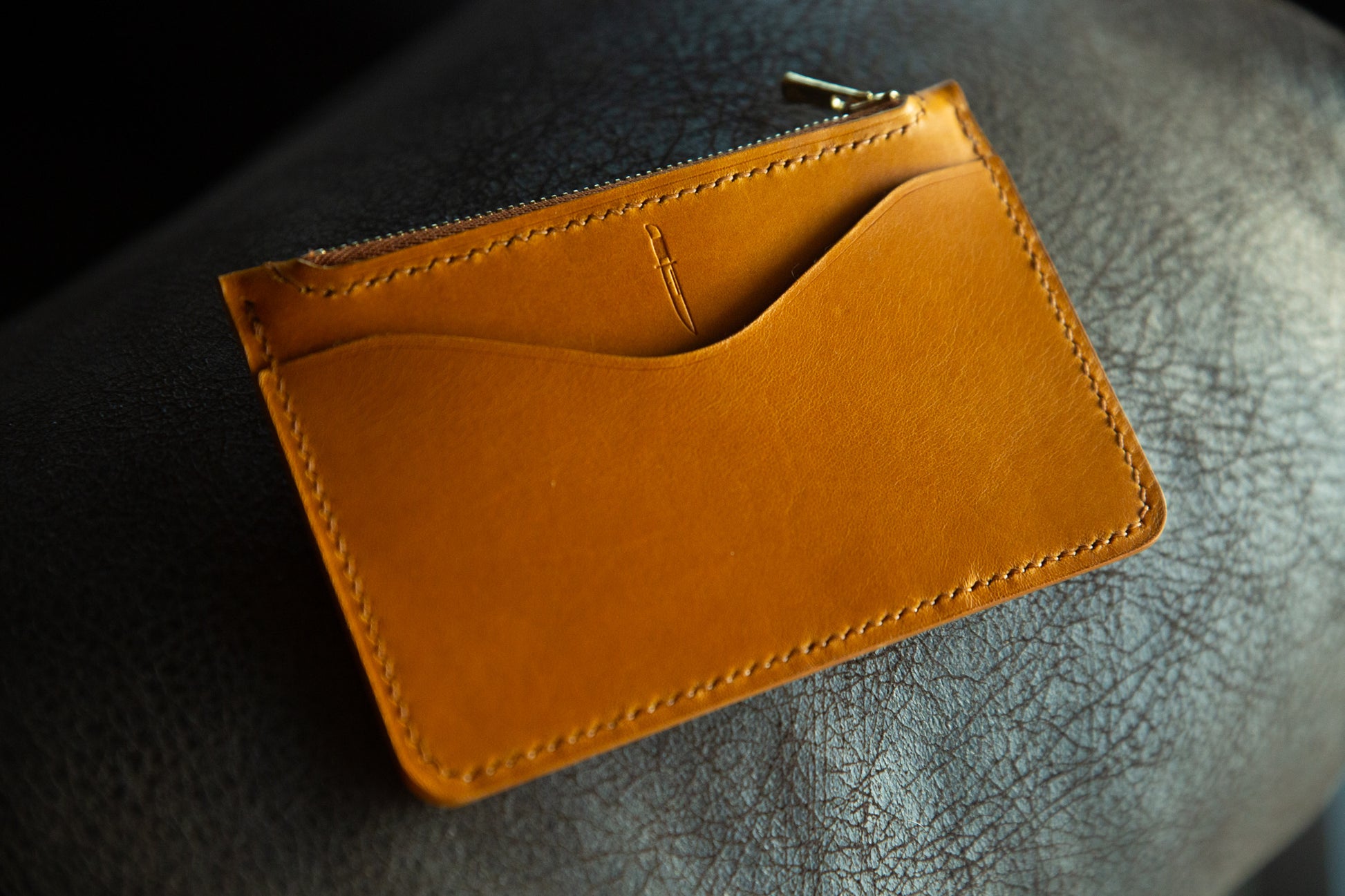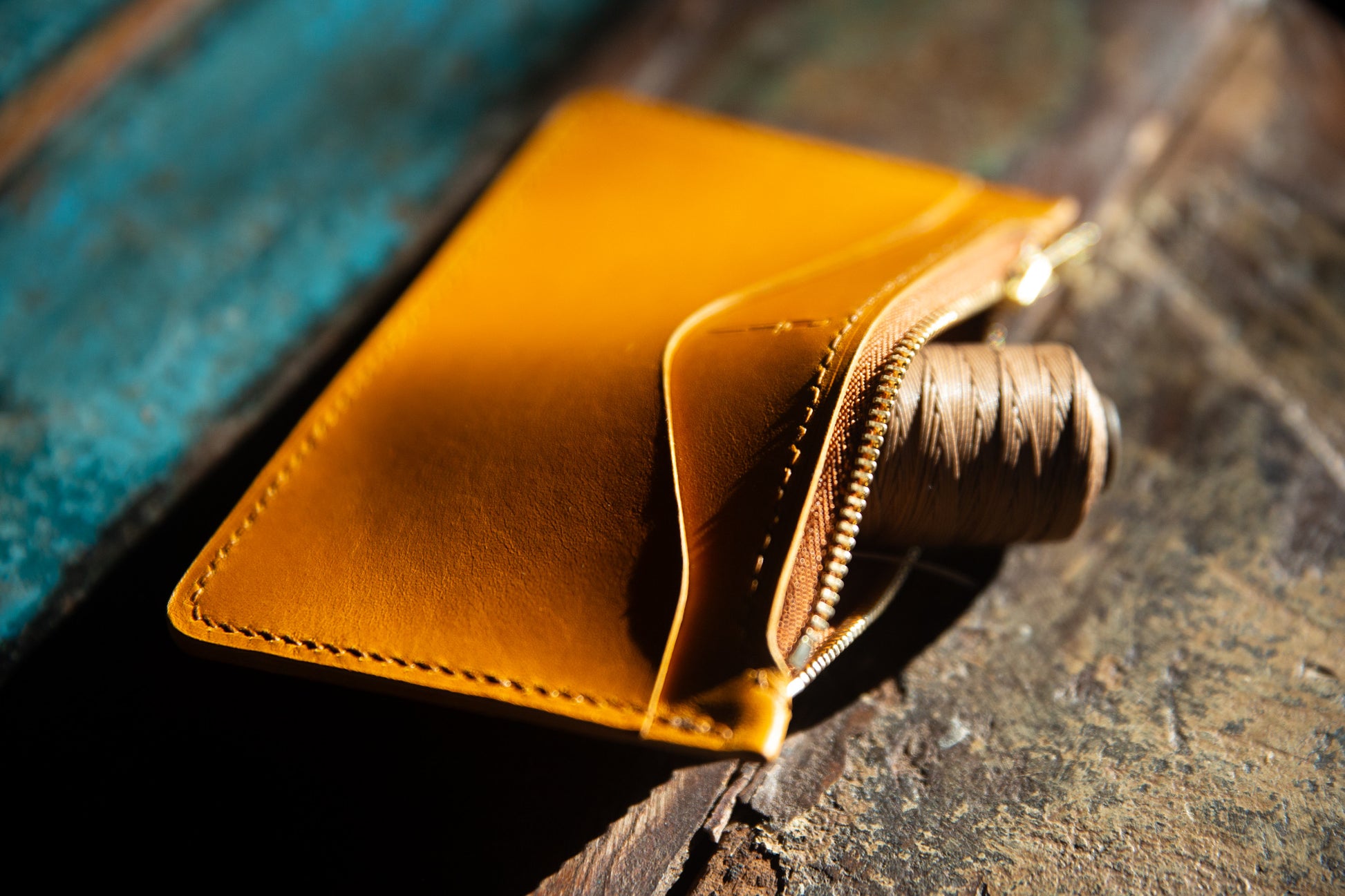 The Zip Wallet is sewn with waxed linen thread in a matching color. I wax all thread with my own beeswax.